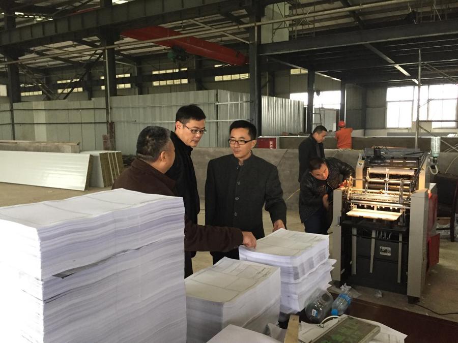 教投公司董事长陈建强、总经理廖昭宏、副总兼春晖印务执行董事蒲昌文正在现场视察。