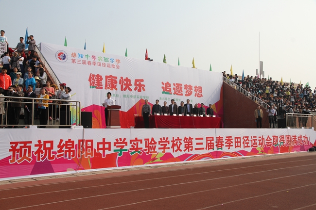 绵阳教育投资发展有限公司总经理廖昭宏鼓励到:“此次‘第三届春季田径运动会’,既是展示绵实素质教育成果、昭示体育教育风范的盛会,也是检验我市中学生体育竞技水平和精神文明素养的窗口。希望运动员们在三天时间在这里放飞梦想,张扬活力,释放激情,将以飞扬的青春和强健的体魄展示‘更高、更快、更强’的体育之魂。”