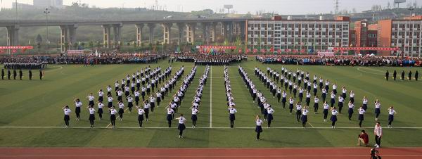 4月1日上午9:00,绵阳中学实验学校迎来了2015年春季田径运动会开幕式。绵阳市教育和体育局副局长张登才、绵阳市教育投资发展有限公司总经理廖昭宏、绵阳市教育体育局学校思想政治教育科科长王珏、绵阳市教育体育局学校体育科科长刘成福、绵阳市教育体育局团工委书记张辅出席了开幕式。近五千名学生、教师、家长及媒体记者全程参加了开幕式。