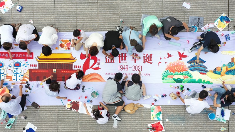 “经过两个小时的认真描绘,一幅幅栩栩如生、富有时代特征的画卷正式完成。五彩斑斓的图䅁、亲切的祝福语呈现出一颗颗热爱祖国的赤子之心。师生脸上洋溢着笑容,齐声祝福祖国母亲繁荣昌盛、万寿无疆。
