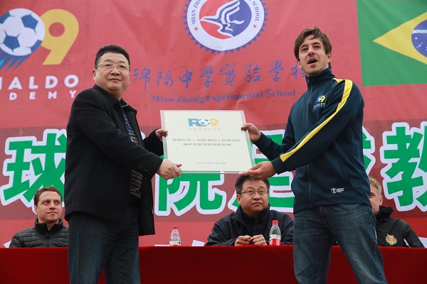 罗纳尔多足球学院校园足球教学交流活动暨合作授牌仪式在绵阳中学实验学校足球场隆重举行
