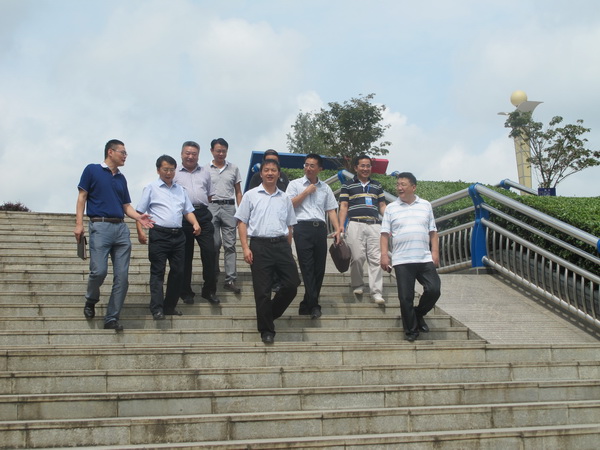 张部长(右二),吴局长(右三),教投陈董事长(右一)、廖总(左一)