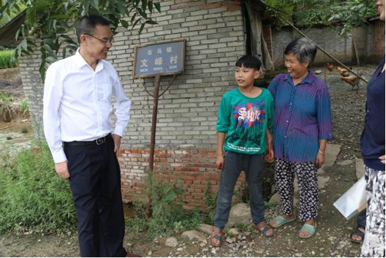 图为教投公司党总支书记田仕富在文峰村看望慰问孤儿饶明杰