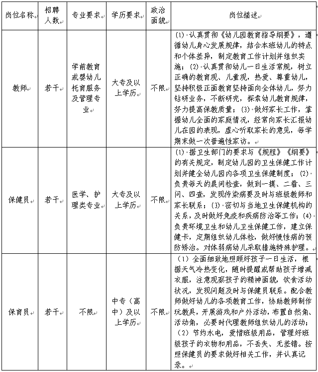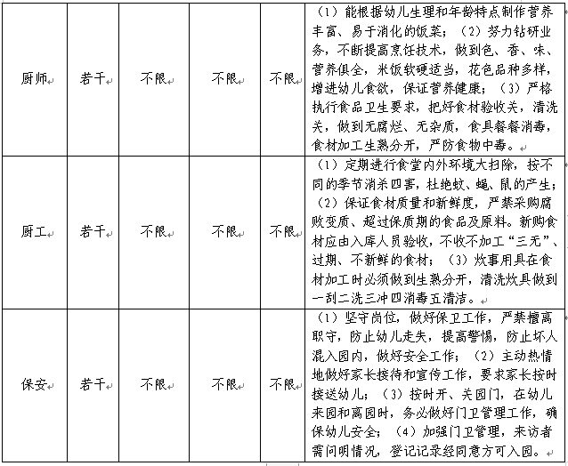4.技能要求:上岗须持毕业证、幼儿教师资格证;艺术类教师不受专业限制但须持有相应学科的教师资格证。