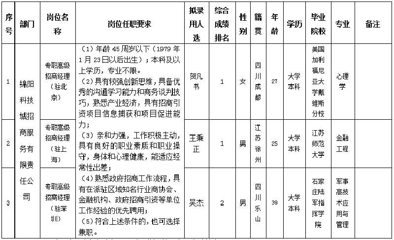 taiav关于绵阳科技城招商服务有限责任公司专职高级招商经理(驻北京、上海、深圳)岗位招聘的拟录用公示
