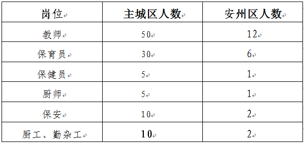 2020年公司将新增7所幼儿园,教师子女可优先就读教投公司旗下学校(绵阳外国语实验学校、绵阳中学实验学校、南山中学实验学校)。根据发展需要,特面向省内外公开招聘幼儿园各岗位人员。现将有关招聘事项公告如下: