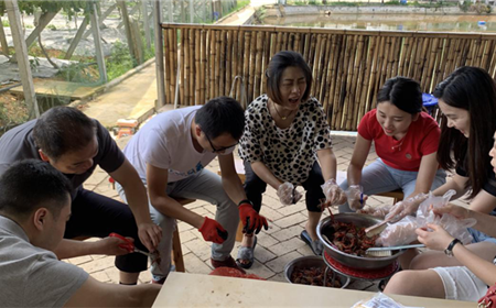 为弘扬中华的饮食文化传统,引导“绿色、健康、营养”的消费理念,丰富职工生活,活跃气氛,6月28日下午,集团工会组织全体职工在郊外举行“教投集团第二届厨艺争霸赛暨首届龙虾节”。比赛以分组形式进行,共分为四组。在团队的默契合作下,现场气氛热烈而欢乐,锅碗瓢盆奏出了和谐乐章,经过洗虾、切菜、备料等一道道工序后,一盘盘色香味俱佳的蒜蓉大虾、酸菜大虾、卤煮大虾、麻辣大虾……摆上了餐桌。随后,评委们对本次比赛...