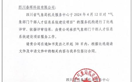近日,四川春晖科技有限公司成功中标四川省气象局的气象系统人才干部系统建设项目。这是春晖科技公司在集团转型人才业务后对外拓展的一个重要项目,进一步彰显了公司在人才系统建设领域的专业实力和竞争优势。作为此次中标的主承建商,春晖科技将发挥自身丰富的行业经验和专业技术优势,全力以赴做好后续的交付工作。公司将严格按照合同要求,确保项目如期高质量完成,为四川省气象局提供优质的人才系统建设服务。此次中标对于春晖...