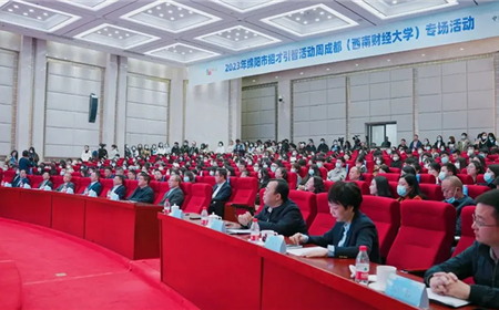 3月3日,“科技”绵阳“城”纳贤才——2023年绵阳市招才引智活动周成都专场活动拉开帷幕。在西南财经大学(柳林校区)弘远楼,“科技”绵阳“城”纳贤才推介招聘会顺利举行,西南财经大学党委书记赵德武,西南财经大学党委副书记、校长卓志,西南财经大学党委副书记、副校长李永强,市委常委、组织部部长莫怀学等领导出席活动。1500多名高校人才竞相“赴约”,希望牵手绵阳共赴美好未来。推介会上,西南财经大学党委副书...