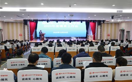 十年南实,屡创辉煌;十年德育,砥砺前行。10月26日下午,绵阳南山中学实验学校在第二学术厅召开以“‘规范·责任’树南实校园新风‘沟通·引领’寻多元德育途径”为主题的2020学年度德育工作会。会议由团委书记王雪梅主持。全体行政、各年级各部年级组全体成员、团委副书记、全体班主任参加了会议。学校党委书记、校长谭世贵发表讲话,他充分肯定了建校以来班主任在德育管理中取得的显著成绩,他对班主任的辛勤付出表示衷...